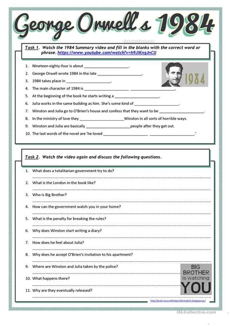 In this 1984 activity sheet and progress test worksheet, high schoolers respond to a total of 27 multiple choice,. English as a second language (esl) grade/level: 3) down with big brother.