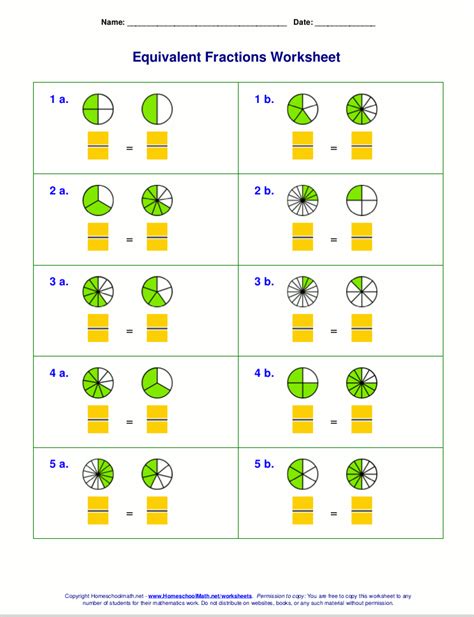 Free equivalent fractions worksheets with visual models from www.homeschoolmath.net