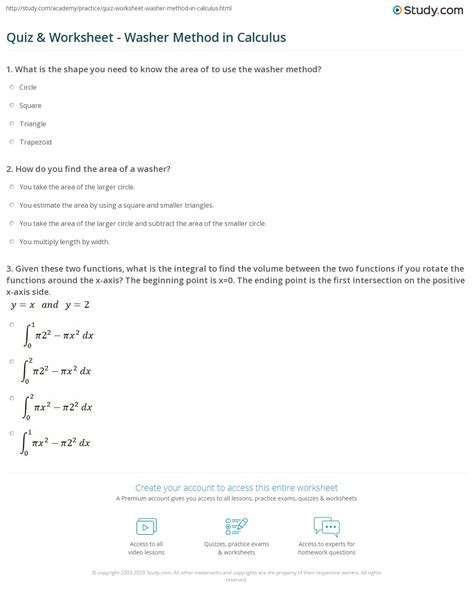 Quiz & Worksheet Washer Method in Calculus from study.com