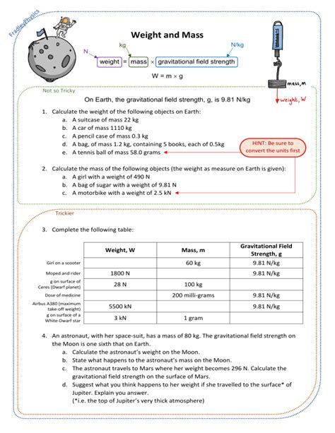 The Sheet Explains The Difference Between Mass And Weight And Shows Students How To.